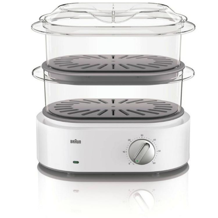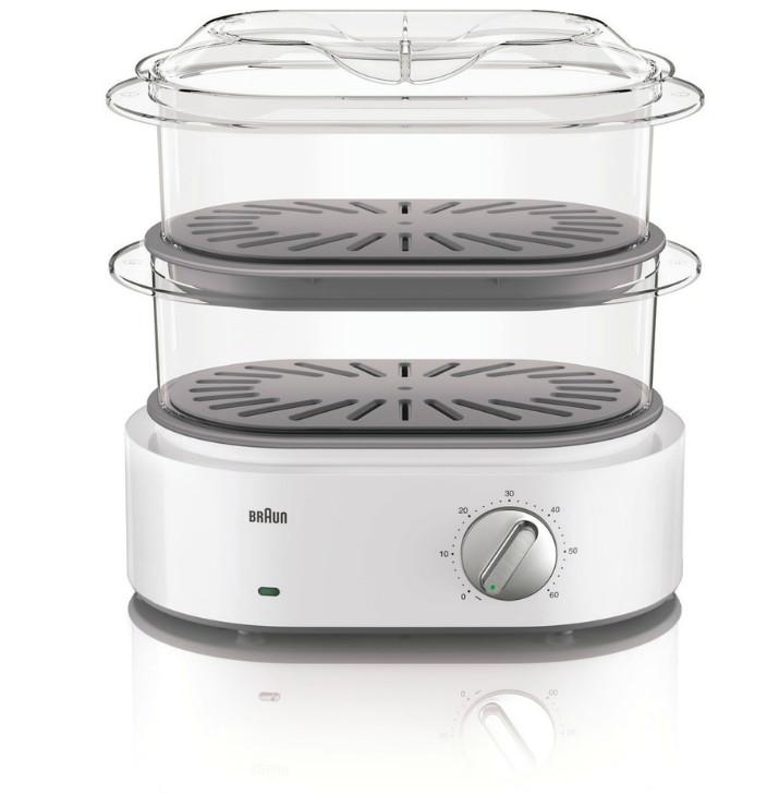 Braun FS5100WH Le cuiseur vapeur FS5100WH Identity Collection de Braun vous permet de cuisiner de manière saine et diététique en toute simplicité ! Possédant 2 paniers transparents sans Bisphénol A : pour réaliser des préparations saines et équilibrées en respectant la sécurité alimentaire de toute