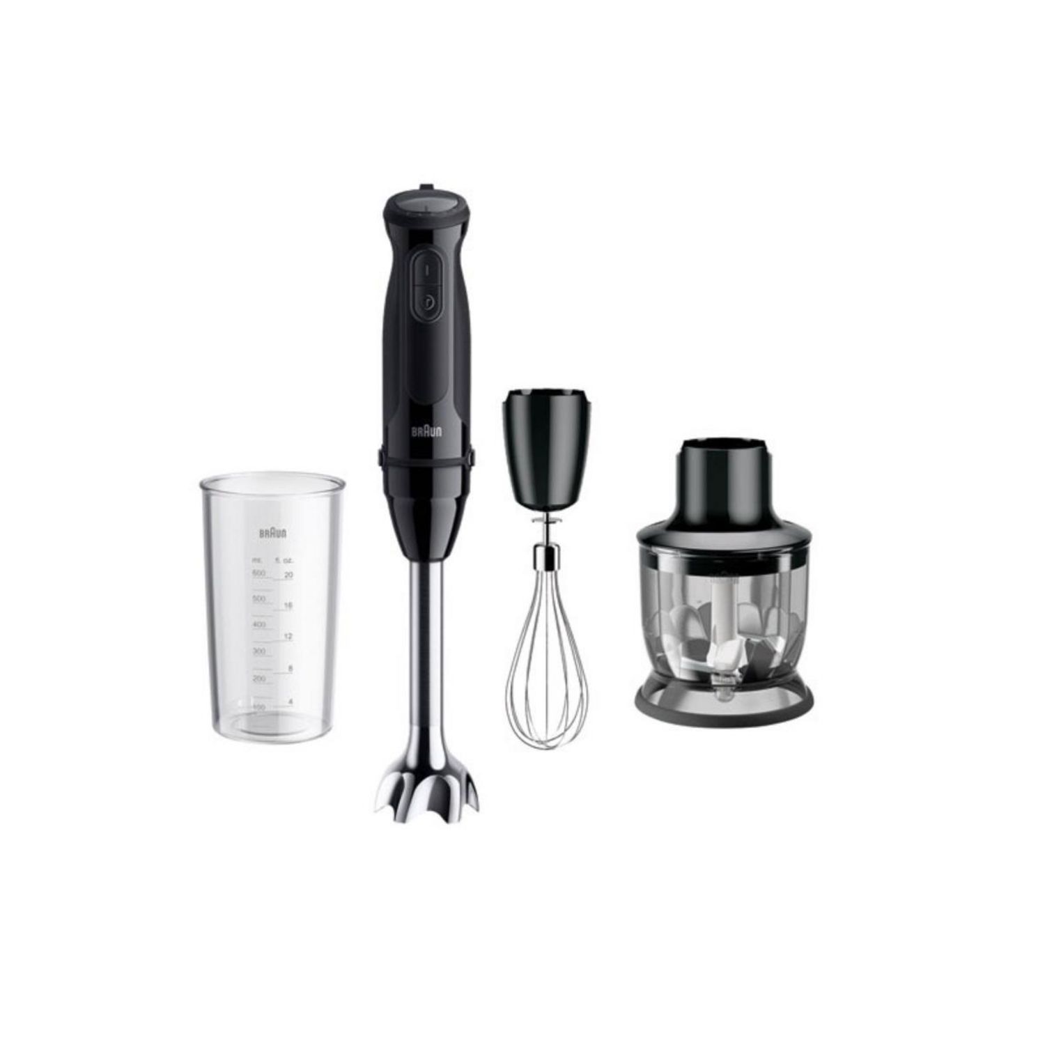 Braun MQ50202M Mixeur MultiQuick 5 MQ50202M de Braun. La polyvalence illimitée ! Ce mixeur a été conçu pour vous aider à cuisiner des plats maisons et sains au quotidien !. Profitez d'une précision et d'une puissance maximale dans votre main grâce à son moteur puissant et son variateur manuel de 21 vitesses facilement réglables d'une seule main. Technologie PowerBell Plus : zone de coupe étendue pour mélanger des aliments entiers en quelques secondes. Technologie SplashControl : système anti-éclaboussures pour une cuisine impeccable. Variateur manuel de 21 vitesses pour un ajustement de la vitesse d'un seul doigt et sans interruption. Poignée Soft Grip, partiellement souple, et conçue de manière ergonomique pour plus de contrôle et une meilleure maniabilité dans toutes les situations - Système EasyClick : 2 boutons et 1 seul click pour changer rapidement et facilement tous les accessoires - Fouet à fils : fouette, bat et mélange facilement des œufs, de la crème et des desserts onctueux en vitesse lente ou rapide - Bol hachoir 500 ml : pour couper finement de la viande, du fromage à pâte dure, des noix et des herbes.