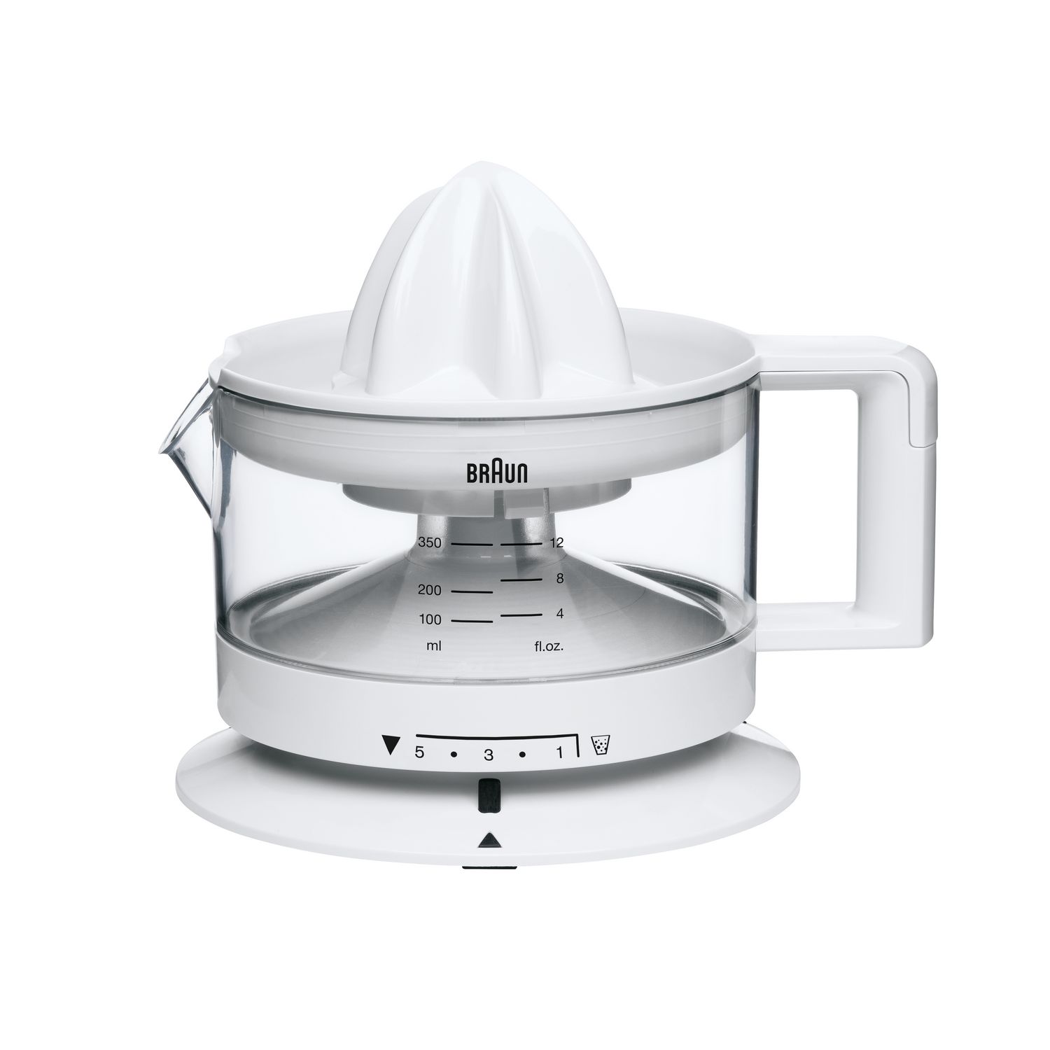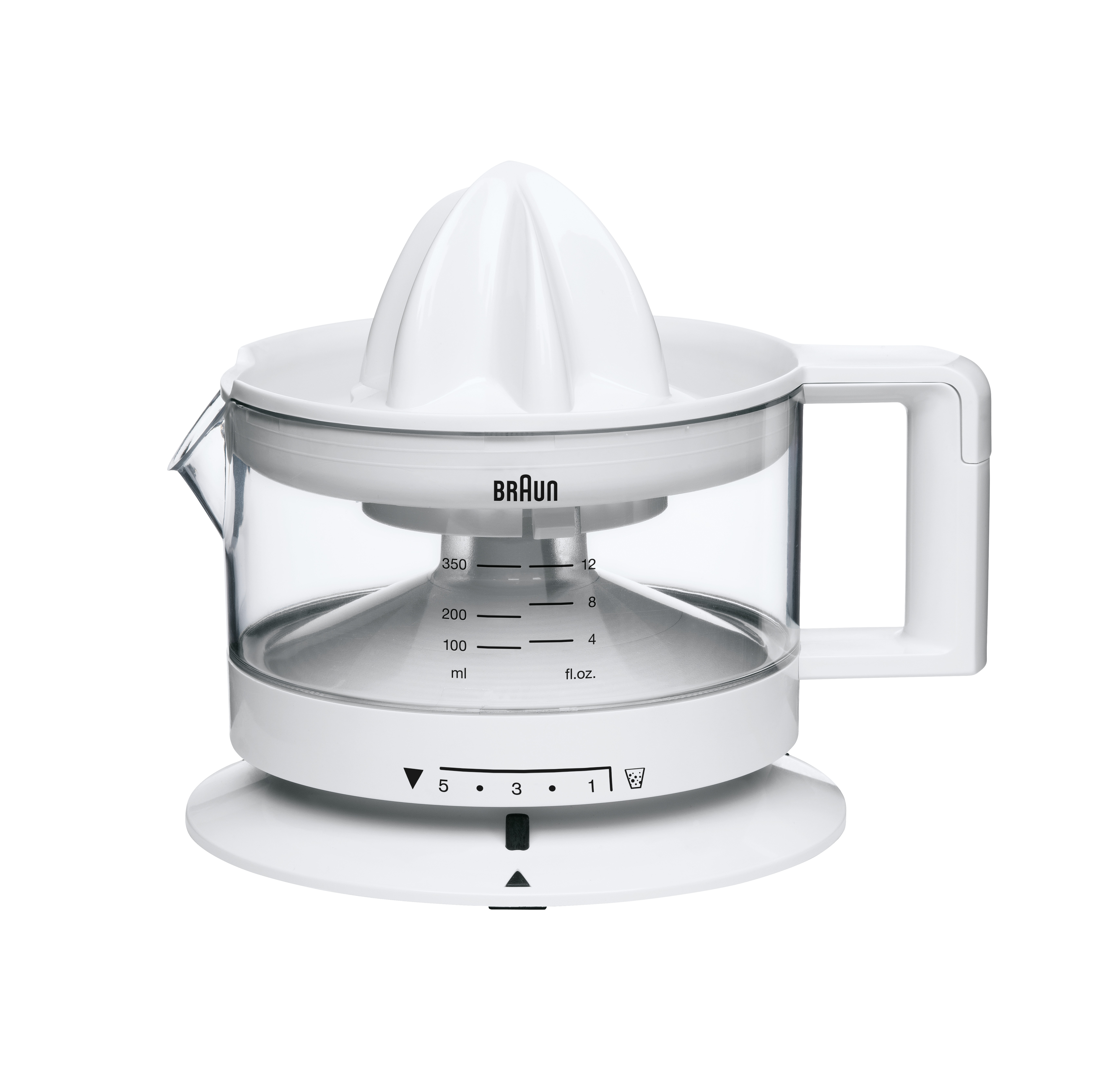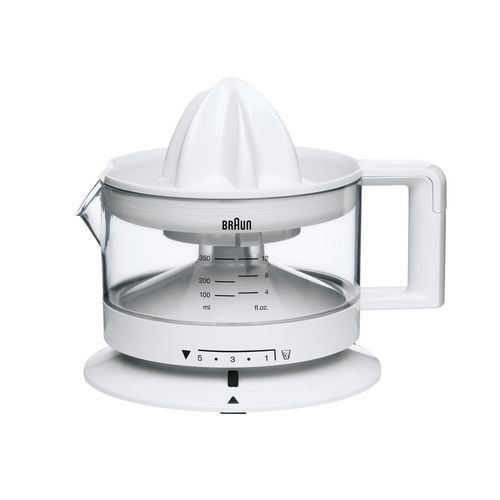 Profitez de ce presse agrumes de 20W et de sa capacité de 350ml pour vous faire de délicieux jus. Braun vous propose 1 vitesse ainsi qu'un contrôle réglable du passage de la pulpe. À noter que ce presse agrume propose une rotation bi-directionnelle pour une meilleure extraction du jus ainsi qu'un arrêt/départ automatique. Ce produit est lavable en lave-vaisselle.