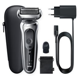 Le rasoir électrique Braun 71-S1000S est un rasoir pour homme. Il est équipé d’une tête de rasage Sensoflex et de lames de précision qui coupent les poils de manière efficace et douce pour la peau. La tondeuse est étanche et peut être utilisée sous la douche ou avec de la mousse à raser pour un rasage plus confortable. Elle est également équipée d'une batterie rechargeable offrant jusqu'à 50 minutes d'utilisation et peut être utilisée avec ou sans fil. La tête de rasage à 360°C permet un rasage en profondeur même dans les zones du cou sans difficulté. Un étui de voyage et une pochette d’accessoires sont inclus.
