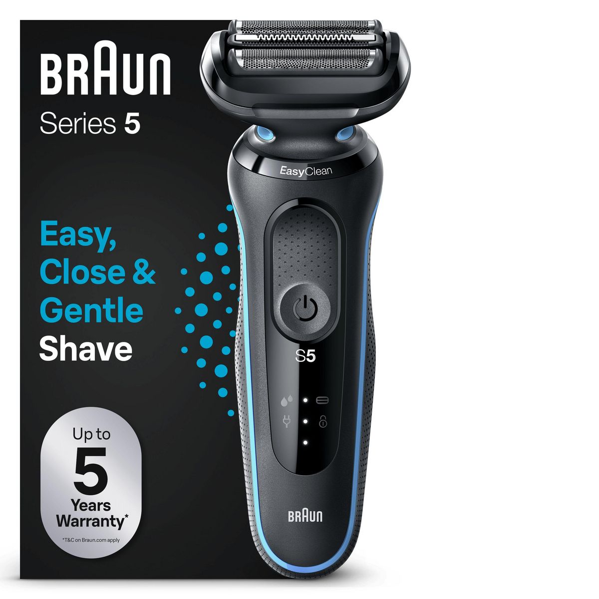 Le rasoir Braun Series 5 51-M1000s dispose de trois éléments de rasage flexibles qui s’adaptent aux contours du visage – pour un rasage complet et facile. La tête de rasage dispose également du système EasyClean, qui permet un nettoyage rapide et facile sans retirer la tête de rasage. Grâce au système EasyClick, le rasoir peut être converti d’un simple clic. Les accessoires pour différents besoins de soins peuvent être facilement remplacés. La batterie lithium-ion intégrée permet jusqu’à trois semaines de rasage (50 minutes d’autonomie) et une charge rapide de cinq minutes suffisante pour une application. Grâce à la technologie Wet&Dry, la Braun Series 5 est 100% étanche et adaptée au rasage humide et sec. De plus, l’utilisation avec de la mousse ou du gel n’est pas un problème.