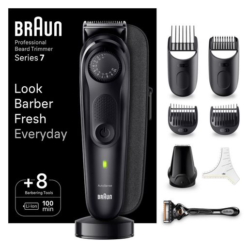La tondeuse barbe BRAUN BT7440 est l'outil parfait pour un look soigné et précis. Avec une autonomie de 100 minutes et un temps de charge rapide de seulement 1 heure, vous pouvez compter sur une utilisation prolongée et efficace. Avec 39 réglages de coupe de 0,5 à 20 mm, vous pouvez facilement trouver la longueur de barbe qui convient le mieux à votre style. Cette tondeuse est également facile à nettoyer et à entretenir pour une utilisation durable. Elle est fournie avec : 1 tondeuse à barbe avec tête ProBlade, 1 tête de tondeuse de précision, 1 sabot de précision pour barbe (0,5 à 10 mm), 1 sabot de précision pour cheveux (10,5 à 20 mm), 1 sabot à barbe, 1 rasoir Gillette ProGlide, 1 recharge Gillette ProGlide, 1 base de recharge, 1 pochoir à barbe, 1 brosse de nettoyage, 1 étui de voyage.