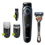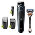 La boîte inclut : 1 tondeuse à barbe et cheveux, 1 peigne à barbe, 1 peigne pour cheveux, 1 rasoir Gillette Fusion 5, 1 chargeur avec prise d’alimentation et 1 brosse de nettoyage.