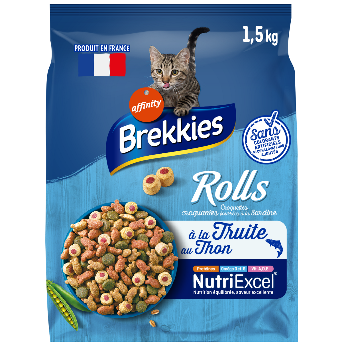 BREKKIES croquettes Chat Rolls Poissons - 1,5 kgs