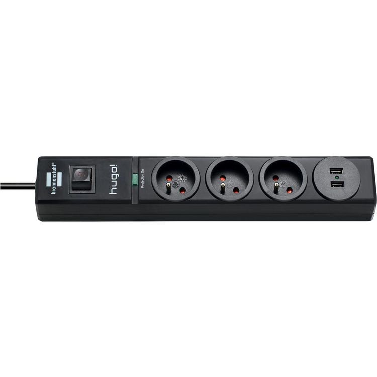 Parasurtenseur 3 PRISES NOIR 2xUSB 2M H05VV-F 3G1.5