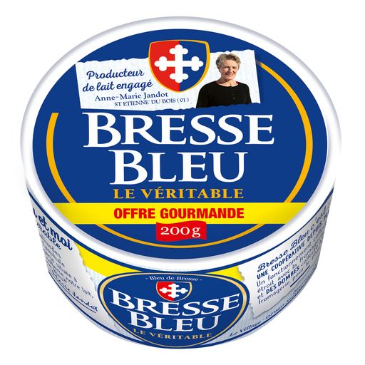 Bresse Bleu est fabriqué et affiné en Bresse avec du lait collecté à moins de 45 km de la fromagerie. Son caractère de bleu et son crémeux unique font de Bresse Bleu un allié de goût pour apporter une touche de gourmandise et d'authenticité à votre plateau de fromage et votre cuisine. Bresse Bleu, si bleu, si crémeux!