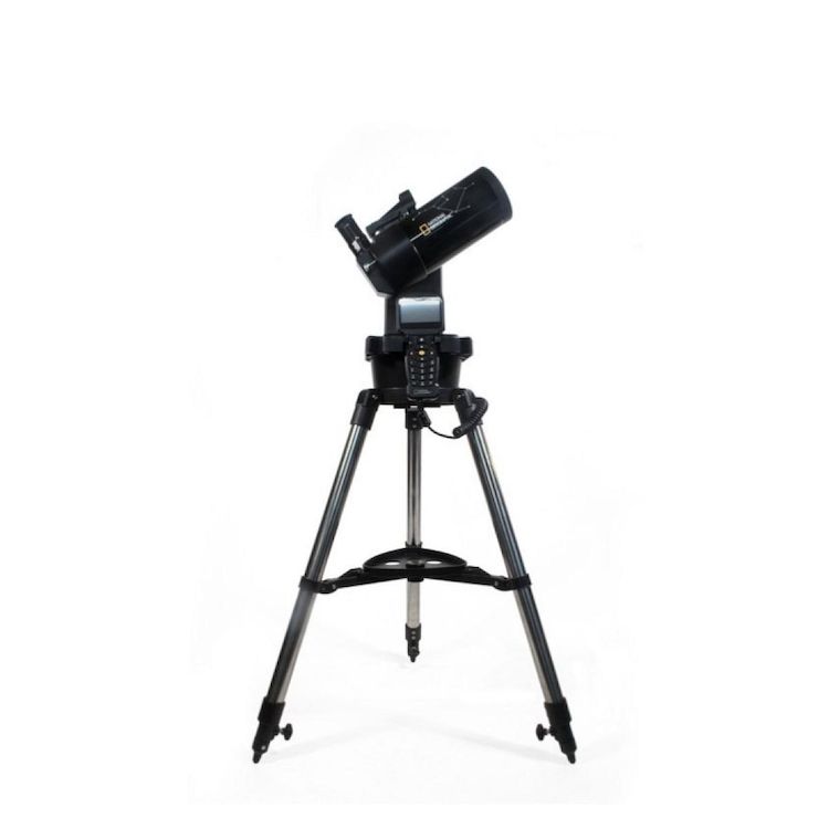 Le télescope Bresser National Geographic 90/1250 GoTo, doté d'une optique Maksutov-Cassegrain et d'un système de suivi automatique, produit des images nettes, précises et à contraste élevé. Pour commencer vos observations, placez l'instrument sur un trépied ou une surface plane, appuyez sur le bouto