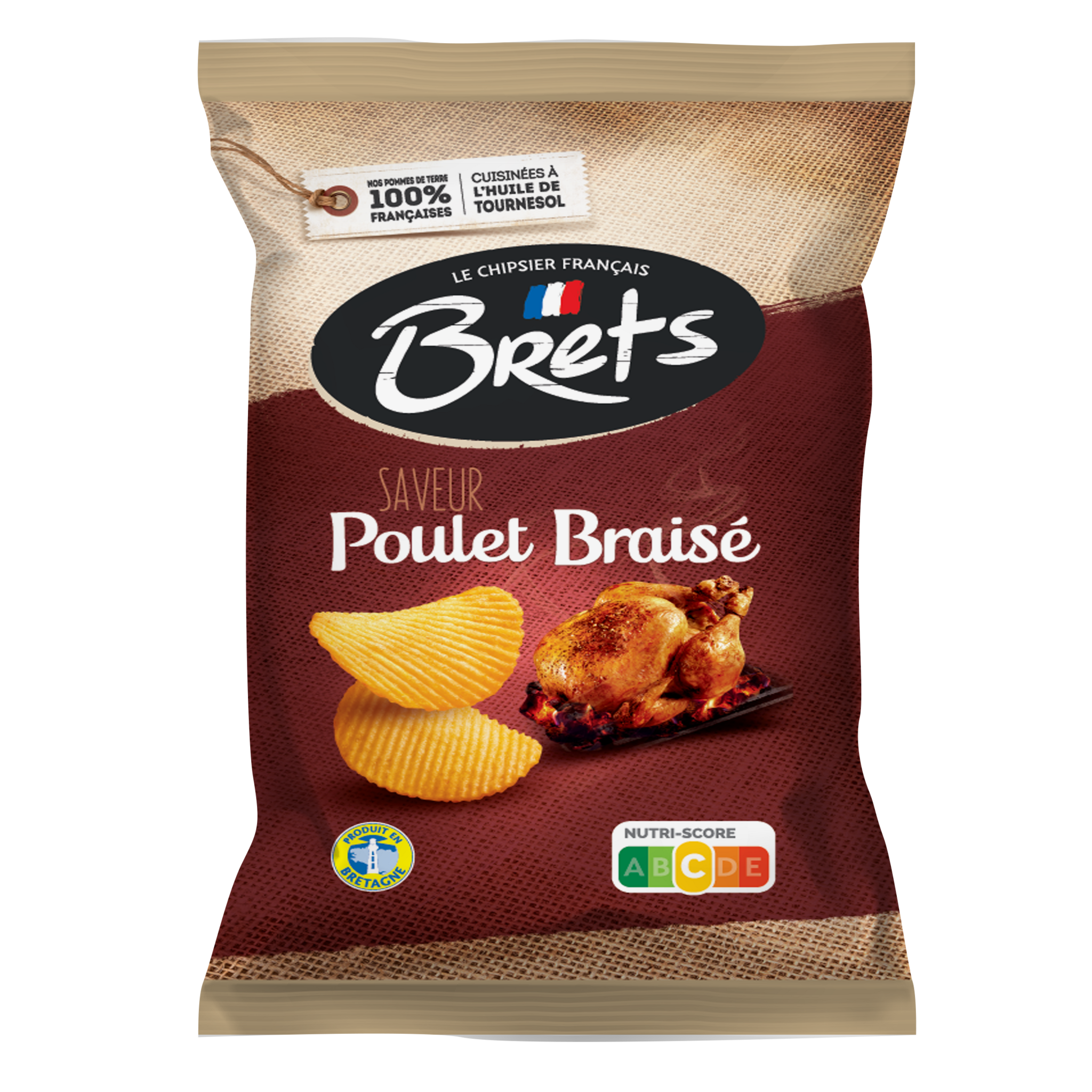 Notre bestseller au goût inimitable de poulet rôti du week-end ! La super craquante poulet braisé évoque ces bons moments de dégustation et de convivialité autour d'un feu de bois ou d'un barbecue. / Bret's: la qualité en toute simplicité : Des pommes de terre françaises, une cuisson à l'huile de tournesol, une pincée de sel, des goûts justes et authentiques et c'est tout ! / Bret's : un engagement citoyen. Nous sommes une entreprise familiale impliquée dans le développement économique de notre région. / Merci à nos agriculteurs : 265 agriculteurs bretons s'engagent avec Bret's pour la qualité de nos pommes de terre et la réduction des traitements dans les champs. / Bret's préserve l'environnement : Grâce à une gestion de l'eau et des approvisionnements locaux, nous agissons au quotidien pour améliorer notre bilan carbone. / Produit en Bretagne / Fabrication française
