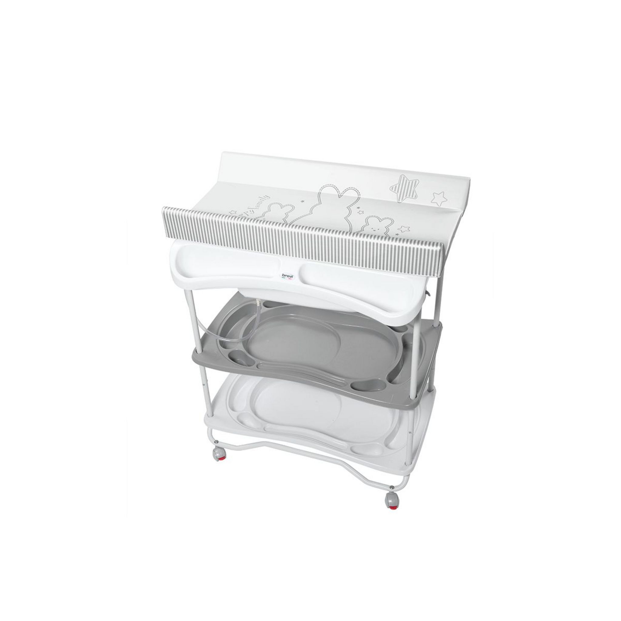-Plan à langer équipé d’un système de verrouillage automatique permettant de soulever ou d’abaisser le plan à langer tout en conservant le bébé dans les bras
