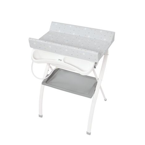 "LINDO Table à langer pliante BREVI, design très actuel . Super pratique, ouverture et fermeture d'une seule main. Grande baignoire anatomique 2 positions : Position « transat » avec pommeau d’entrejambe très confortable pour une utilisation dès la naissance.Position « bébé assis » plus profonde et plus large pour une utilisation dès 6 mois. Pliante, idéale pour les petits espaces.