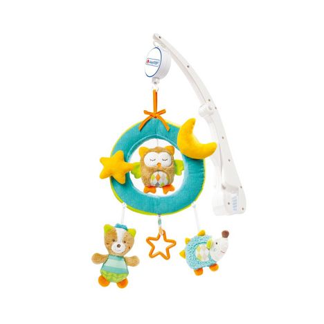 Tous les personnages peuvent être détachés du mobile, devenant de petits jouets à câliner. Le mécanisme du mobile est équipé d'un système de freinage pour arrêter la musique à tout moment. Tous les tissus sont hypoallergéniques