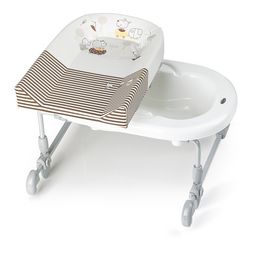 Bagnotime va aider les parents pour le bain de bébé. Réversible, la baignoire peut se placée à gauche ou à droite des robinets. Elle peut également se placer sur une baignoire de forme irrégulière avec une largueur maximale de 90 cm. Cette dernière est réglable en hauteur sur 6 niveaux avec une portée jusqu’à 11 cm. Côté sécurité, elle est équipée de double dispositif de sécurité placée sous le bain. Capacité de la baignoire de 17 litres. Pliée, la baignoire mesure 82 cm environ.