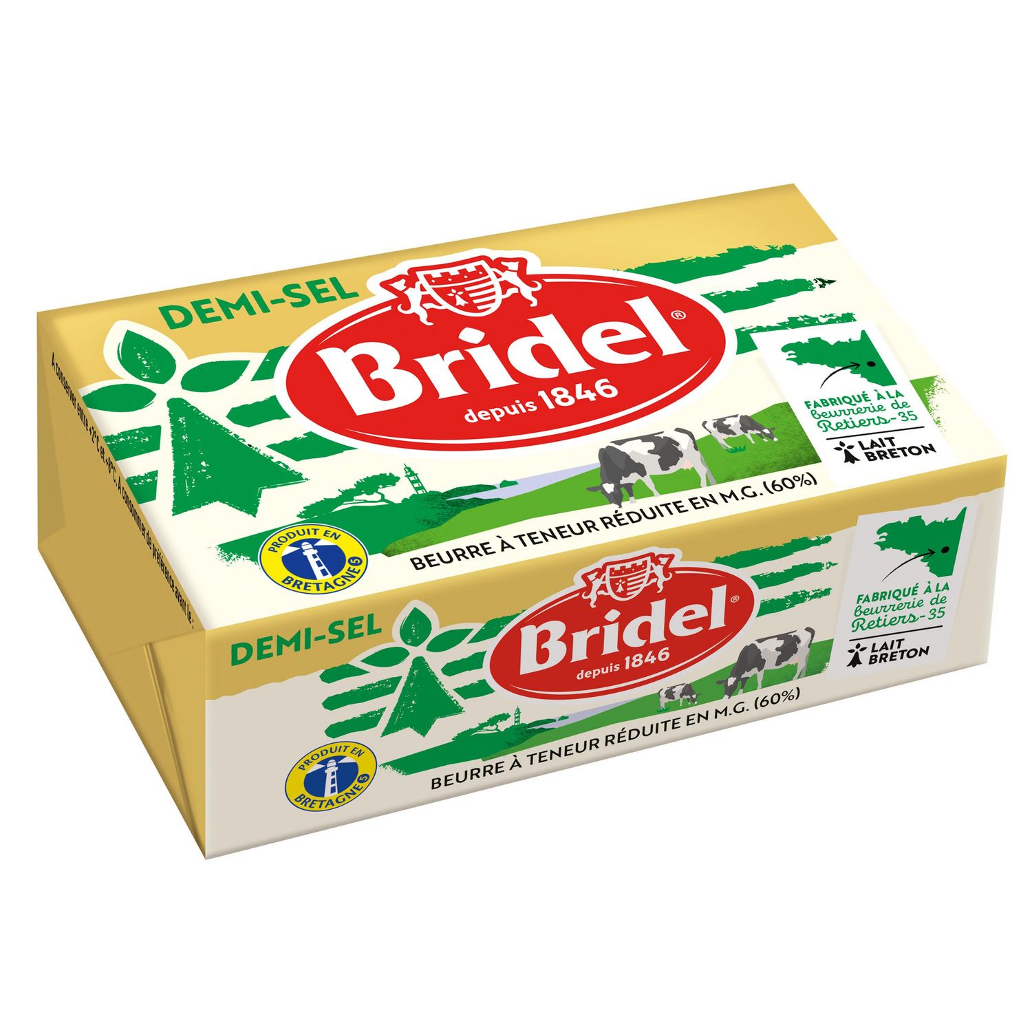 Breton de la collecte à la fabrication, la Plaquette Bridel est un beurre allégé en matière grasse (60% M.G.) au bon goût de crème.