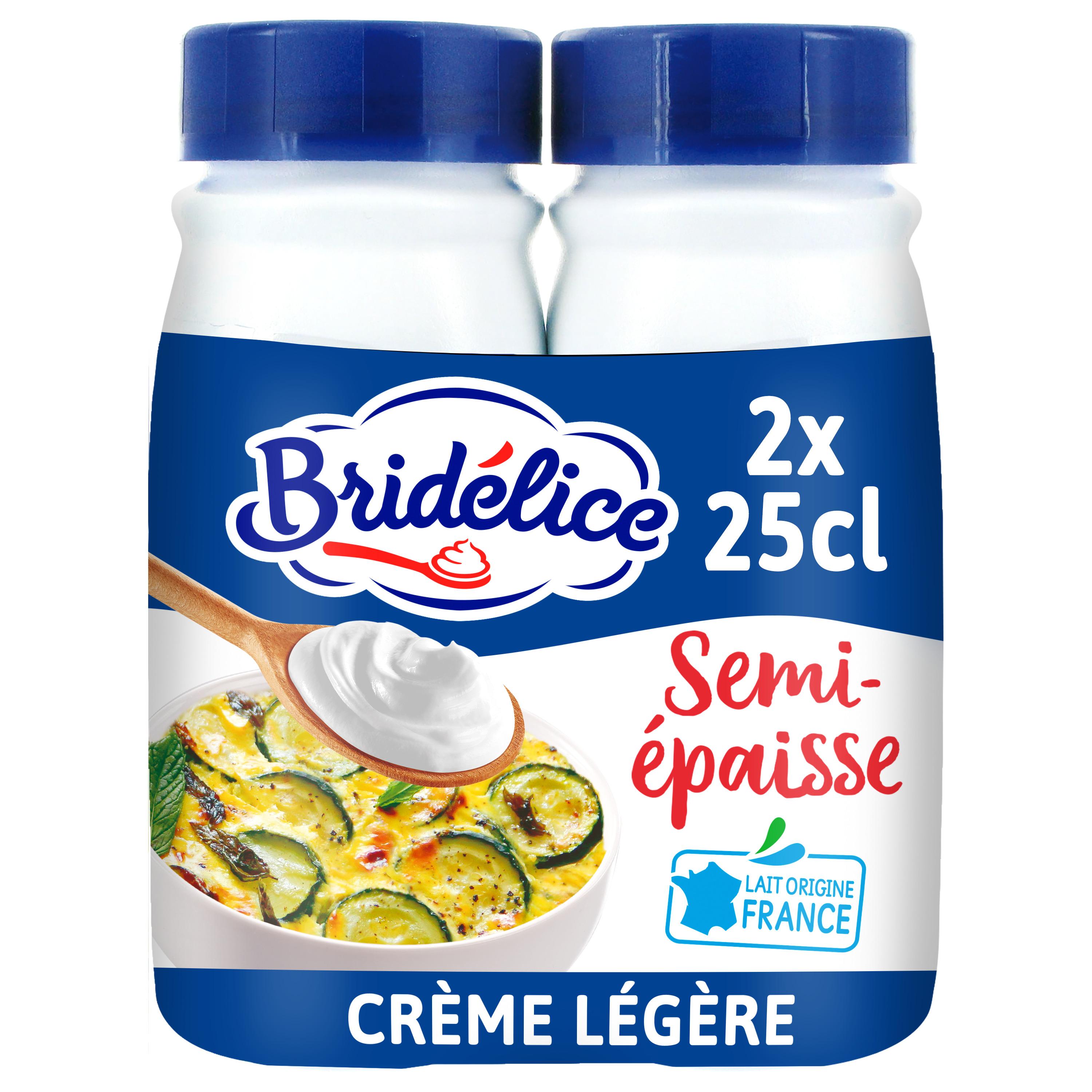 Découvrez la Crème Légère Semi-Epaisse Bridélice avec seulement 18% de matière grasse. Sa texture est idéale pour tous vos plats du quotidien et en particulier en nappage : à chaud sur des pâtes, à froid sur du saumon fumé ou en plaisir sucré sur une