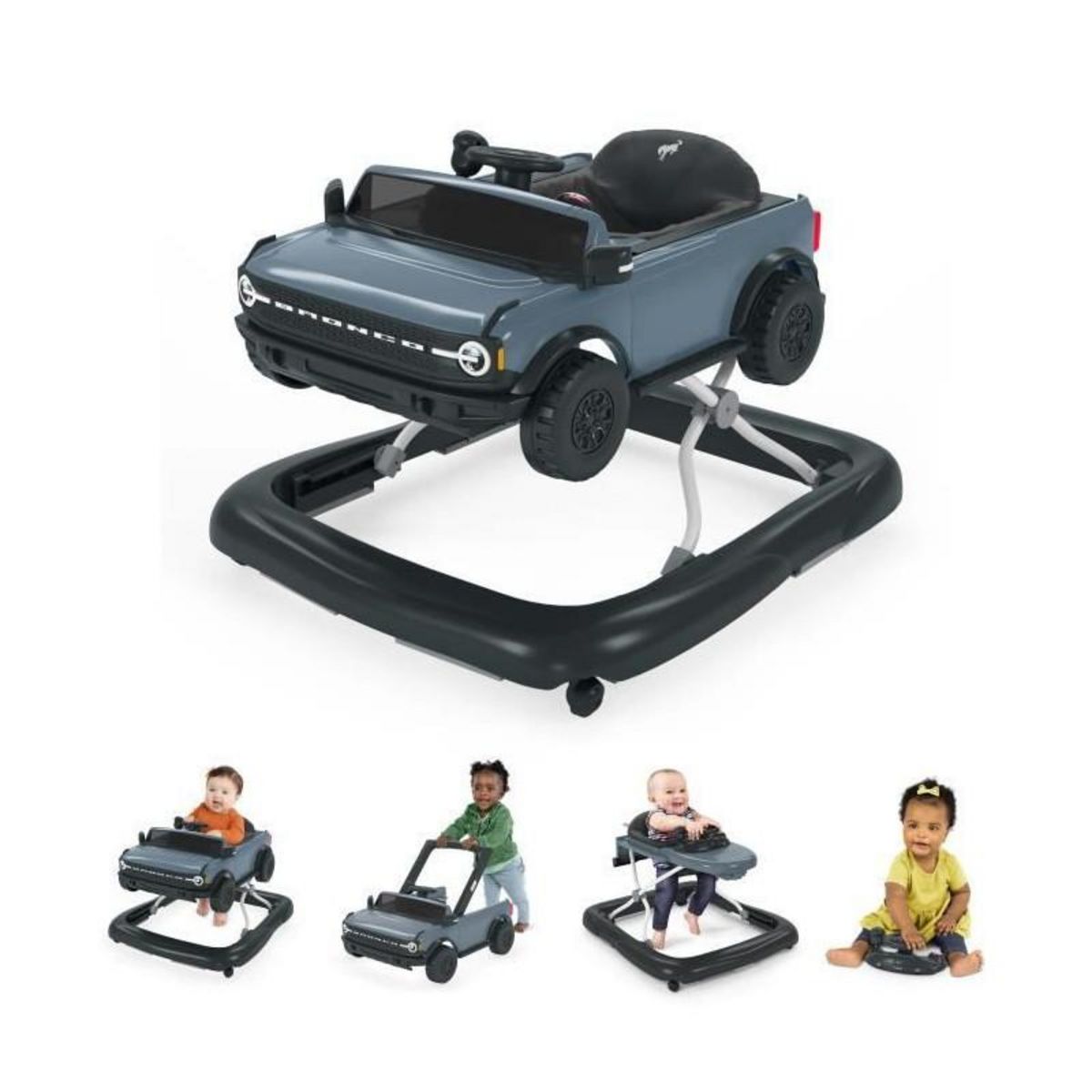 BRIGHT STARTS Trotteur et centre d'activités Ford Bronco 4-en-1, jouet de volant interactif et amovible, gris, a partir de 6 mo