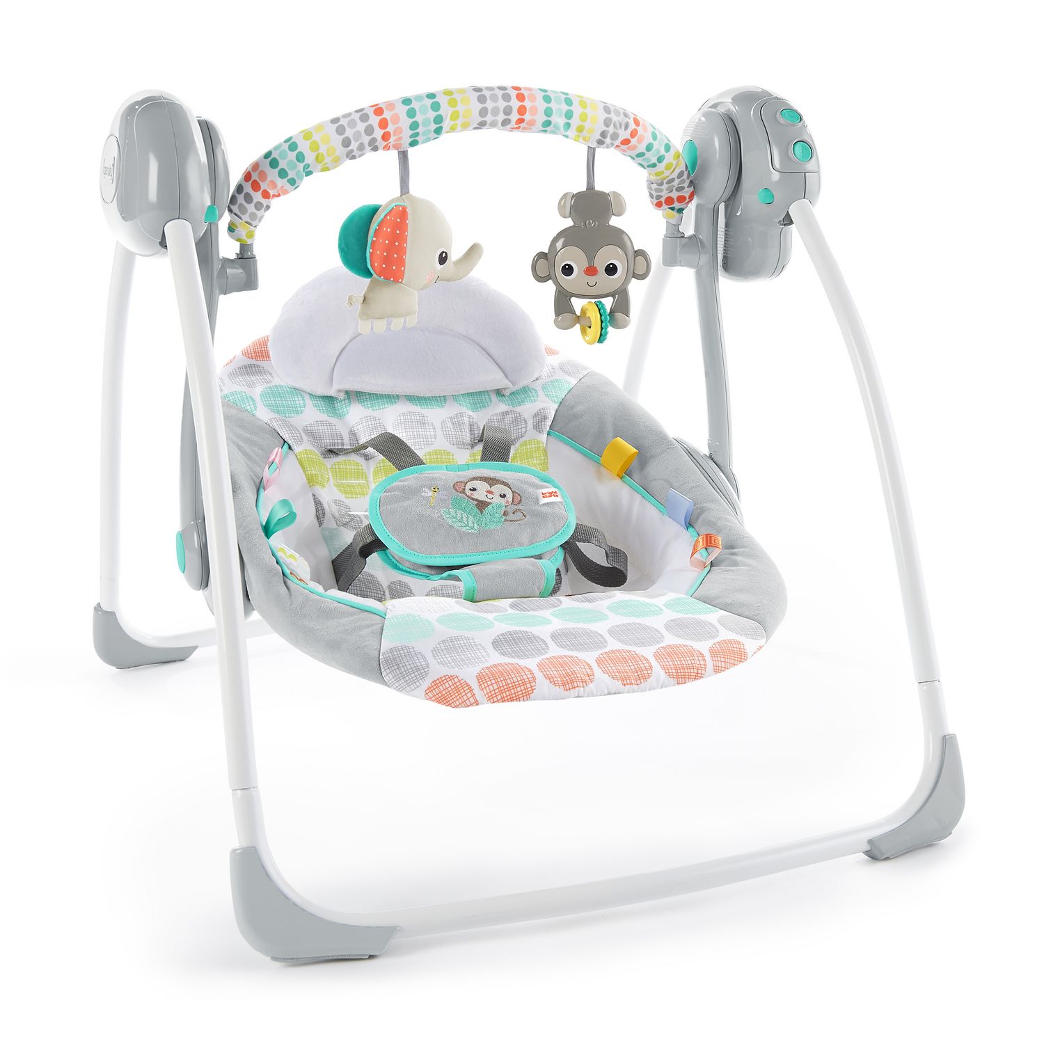 La marque Bright Starts vous présente ce transat balancelle compact Whimsical Wild. Vous aimerez savoir que vous pouvez laisser votre enfant en toute sécurité dans un endroit où il sera aussi bien que dans vos bras. Avec son inclinaison à 2 positions, bébé sera confortablement installé dans ce transat balancelle Whimsical Wild. Deux jouets souriants sont suspendus à la barre de jouets facile à enlever pour garder votre bébé en bonne compagnie. Avec six mélodies gaies, bébé se sentira apaisé. Le harnais réglable à cinq points maintient bébé confortablement dans son siège bercé. Aussi compact que confortable, son design léger et pliable facilite le rangement de cette mini balançoire. Mais ne laissez pas sa petite taille vous tromper, cette balançoire regorge de fonctionnalités. Grâce à la technologie d'adaptation au poids, les nouveau-nés et les nourrissons ressentiront la même vitesse, leur vitesse préférée, même pendant qu'ils grandissent.