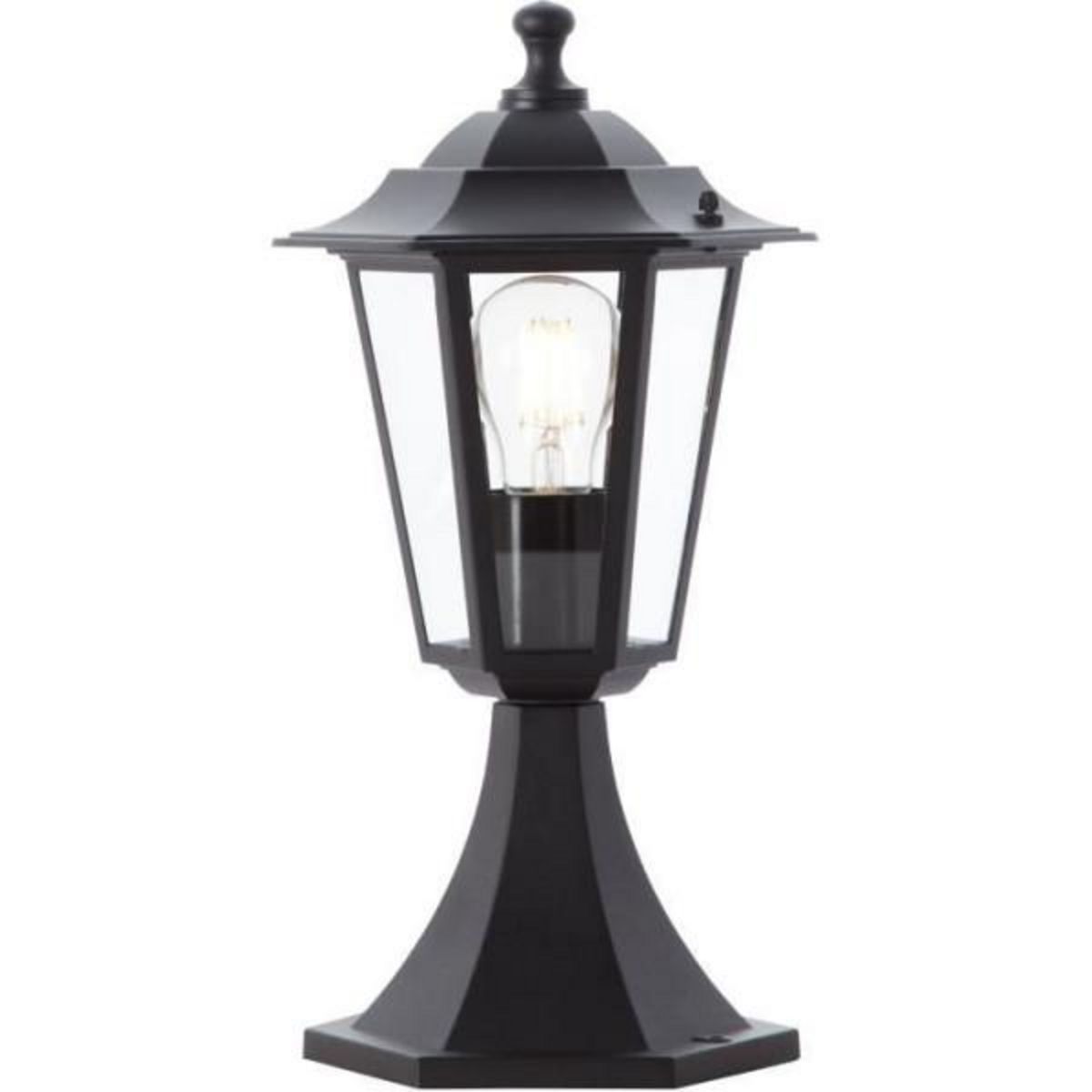 La borne extérieure CARLEEN de BRILLIANT est fabriquée en métal et verre noir. Elle est conçue pour une utilisation en extérieur avec une ampoule E27 max 60W (non incluse) et possede une protection IP44. Ses dimensions sont de 36,3x16,5x19cm. Elle convient parfaitement pour un style altique et intemporel. Garantie de 2 ans.