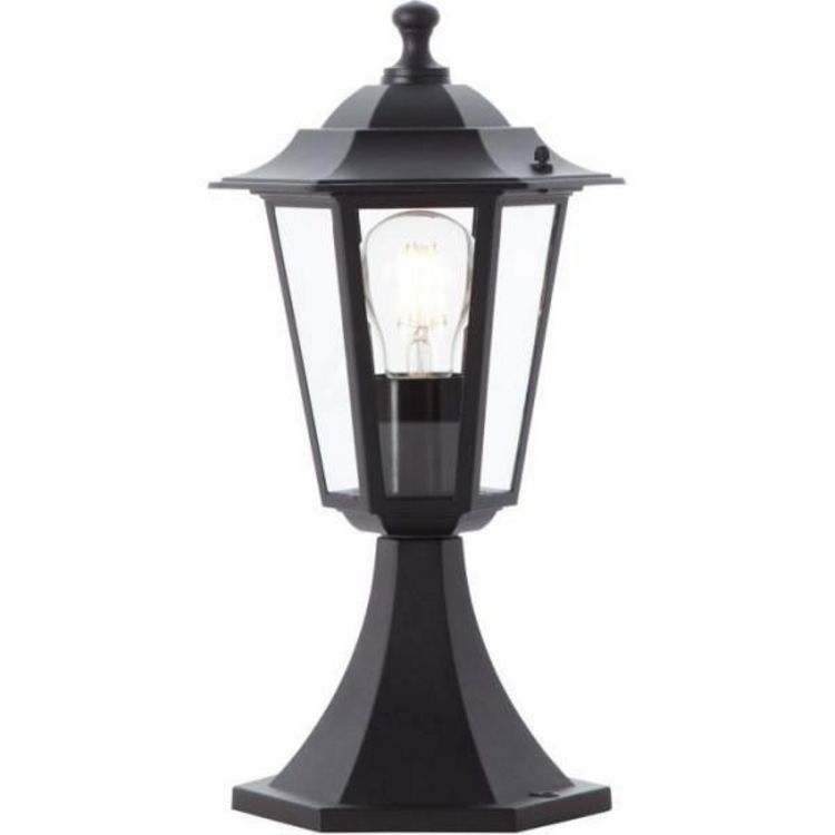 La borne extérieure CARLEEN de BRILLIANT est fabriquée en métal et verre noir. Elle est conçue pour une utilisation en extérieur avec une ampoule E27 max 60W (non incluse) et possede une protection IP44. Ses dimensions sont de 36,3x16,5x19cm. Elle convient parfaitement pour un style altique et intem