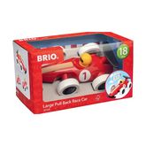 Foncez avec la grande voiture de course à rétrofriction (30308). Il vous suffit de tirer la voiture vers l'arrière, puis de la lâcher et de la regarder partir à toute vitesse. Ce jouet à rétrofriction s'inspire du design de notre Voiture de course BRIO altique, et est idéal pour les tout-petits qui