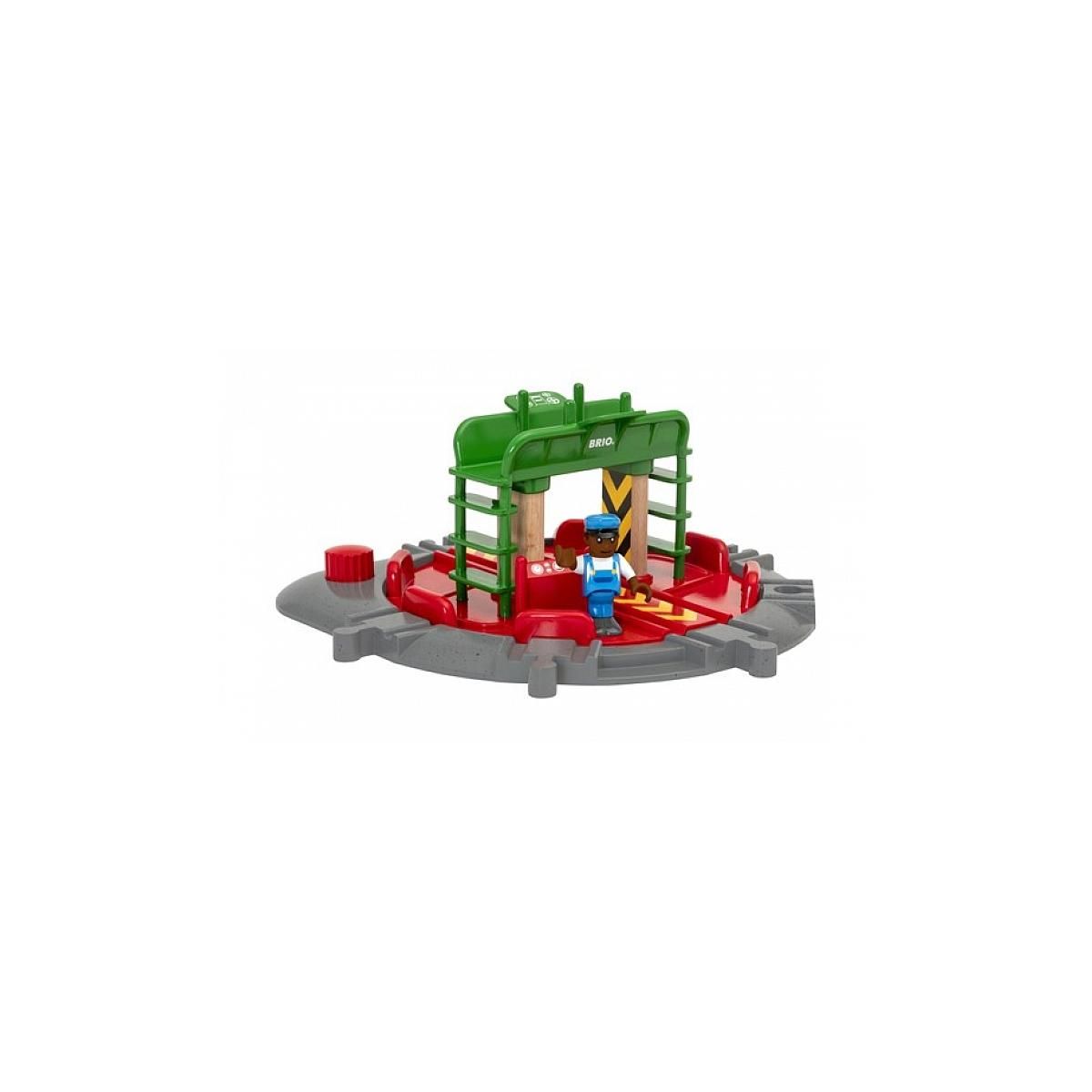 Avec ses sept différents points de liaison ferroviaire, la Plaque tournante et personnage 33476 devient une pièce centrale incontournable au sein du BRIO World. Il y a assez de place sur la plaque pour installer n'importe quelle locomotive du BRIO World - il suffit de tourner le bouton rouge pour voir la plaque centrale tourner et s'ajuster aux voies. Le mécanicien des trains est également inclus et commande, depuis les deux niveaux, la plaque tournante.