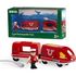 Ce train se recharge avec le câble usb fourni. Il avance et recule grâce aux boutons jaunes placés au dessus de la locomotive. Une fois le wagon de voyageur connecté, le conducteur peut s'installer au poste de conduite et faire le tour du circuit. Figurine incluse : le conducteur.