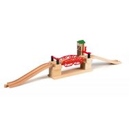 33757 Pont Basculant. C'est au tour du bateau de passer. Abaissez les barrières et tournez la manivelle pour remonter le pont. Inclut 2 rails en montée pour se connecter au réseau ferroviaire.