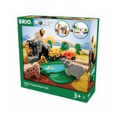 Ce très beau circuit Brio vous embarque pour un reportage safari au milieu de la savane. Écoutez le lion rugir pour vous souhaiter la bienvenue dans son royaume ! Ce joli train en bois permet à votre enfant d'admirer la faune et la flore de cet environnement si merveilleux. Nous retrouvons 3 figurines animaux : un lion, une girafe et un éléphant ainsi qu'un arbre, un étang et quelques rochers pour compléter ce fabuleux décor. Traversez les paysages africains à bord d'un train à vapeur et pour vous accompagner dans votre aventure sur les rails, vous pouvez compter sur l'aide du guide. Équipé de son appareil photo, il immortalise tous les moments forts de votre voyage. Sa mallette de soins peut être aussi utile si des animaux sont malades. Dès l'âge de 3 ans, ce magnifique circuit stimulera l'imagination de votre bambin qui s'inventera d'incroyables histoires au coeur de la savane ! Il développera aussi sa dextérité en assemblant les rails en bois et en faisant glisser le train dessus. Les rails de ce jouet sont en bois certifié FSC. Jouet en Bois Circuit sur 2 niveaux Bois certifié FSC Dès 3 ans