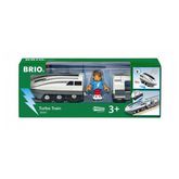 Passez à la vitesse supérieure avec la Locomotive à piles Super Rapide. Il vous suffit d'appuyer sur le gros bouton turbo et ce train à pile va deux fois plus vite, ce qui fait de lui le train le plus rapide du BRIO World. La poussée turbo dure 5 secondes et, tandis que le train va à toute vitesse, les lumières blanches sur les côtés de la locomotive deviennent bleu. Cette locomotive à l'allure futuriste s'accompagne d'un wagon qui accueille un passager chanceux de profiter du voyage. Dès 3 ans. À propos de BRIO World : BRIO World est notre système de jeu ouvert qui grandit avec votre enfant. Tous les jouets BRIO World sont compatibles entre eux et permettent ainsi de créer un monde entièrement personnalisable, idéal pour stimuler les esprits en pleine croissance. Les combinaisons de jeux sont infinies et n'attendent plus que vous pour les explorer et ce train miniature s'intègre parfaitement : il vous suffit de choisir une pièce et de commencer à construire votre univers. ?La Locomotive à piles Super Rapide 36003 inclut 3 pièces : 1 locomotive turbo, 1 wagon de passager, 1 passager. Nécessite 2 piles AA non incluses.
