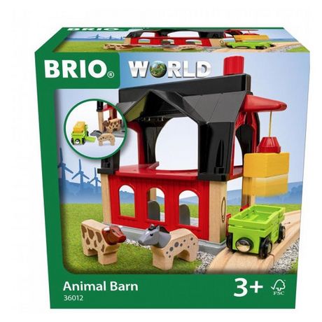 Offrez un endroit agréable à vos animaux BRIO World en optant pour la Grange des animaux (36012). Il y a beaucoup d'espace à l'intérieur pour tous les animaux ainsi que pour ranger leur nourriture à l'étage. Utilisez le treuil sur le toit de l'étable pour prendre la nourriture des animaux dans le wagon et la ranger en toute sécurité. Intégrez cet accessoire à vos circuits de train en bois et vous pourrez aussi utiliser le wagon pour transporter les animaux dans le BRIO World. Dès 3 ans À propos de BRIO World : BRIO World est notre système de jeu ouvert qui grandit avec votre enfant. Tous les jouets BRIO World, de nos rails à nos véhicules et personnages, sont compatibles entre eux et permettent ainsi de créer un monde entièrement personnalisable, idéal pour stimuler les esprits en pleine croissance. Les combinaisons de jeux sont infinies et n'attendent plus que vous pour les explorer et cet accessoire d'étable s'intègre parfaitement dans les produits BRIO World sur le thème de la ferme. 6 pièces : 1 étable, 1 wagon, 1 ballot de foin, 2 animaux, 1 rail en bois.