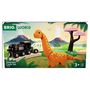 Plongez dans le monde préhistorique et tombez nez à nez sur un dinosaure !. Roar ! Il y a un dinosaure sur la voie du Circuit Dinosaure 36098. Ce circuit de train de 12 pièces sur le thème des dinosaures comprend une locomotive avec wagon, une figurine de dinosaure, un rail thématisé et des rails en bois. Faites attention lorsque le train s'approche car le dinosaure coloré adore manger les feuilles de l'arbre. Utilisez sa queue pour lever et abaisser sa tête, puis attrapez les accessoires grâce à l'aimant BRIO.