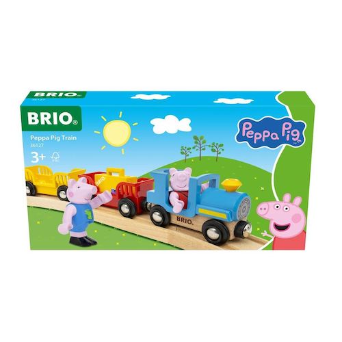 Rejoignez Peppa Pig et George dans une aventure en train avec ce coffret de jeu coloré comprenant un petit train en bois. Comprend une locomotive « grand train » inspirée de la série et des wagons avec des sièges pour les figurines Peppa et George. Avec ses aimants BRIO emblématiques et ses passager