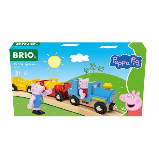 Rejoignez Peppa Pig et George dans une aventure en train avec ce coffret de jeu coloré comprenant un petit train en bois. Comprend une locomotive « grand train » inspirée de la série et des wagons avec des sièges pour les figurines Peppa et George. Avec ses aimants BRIO emblématiques et ses passagers, ce petit train est une combinaison idéale entre un train altique et un jeu de personnages. Rejouez les scènes préférées de la série Peppa Pig ou inventez vos propres histoires. Ce circuit de train encourage le développement de la motricité fine, de la créativité et de l'imagination des enfants pendant qu'ils jouent. Pour les enfants de 3 ans et plus.