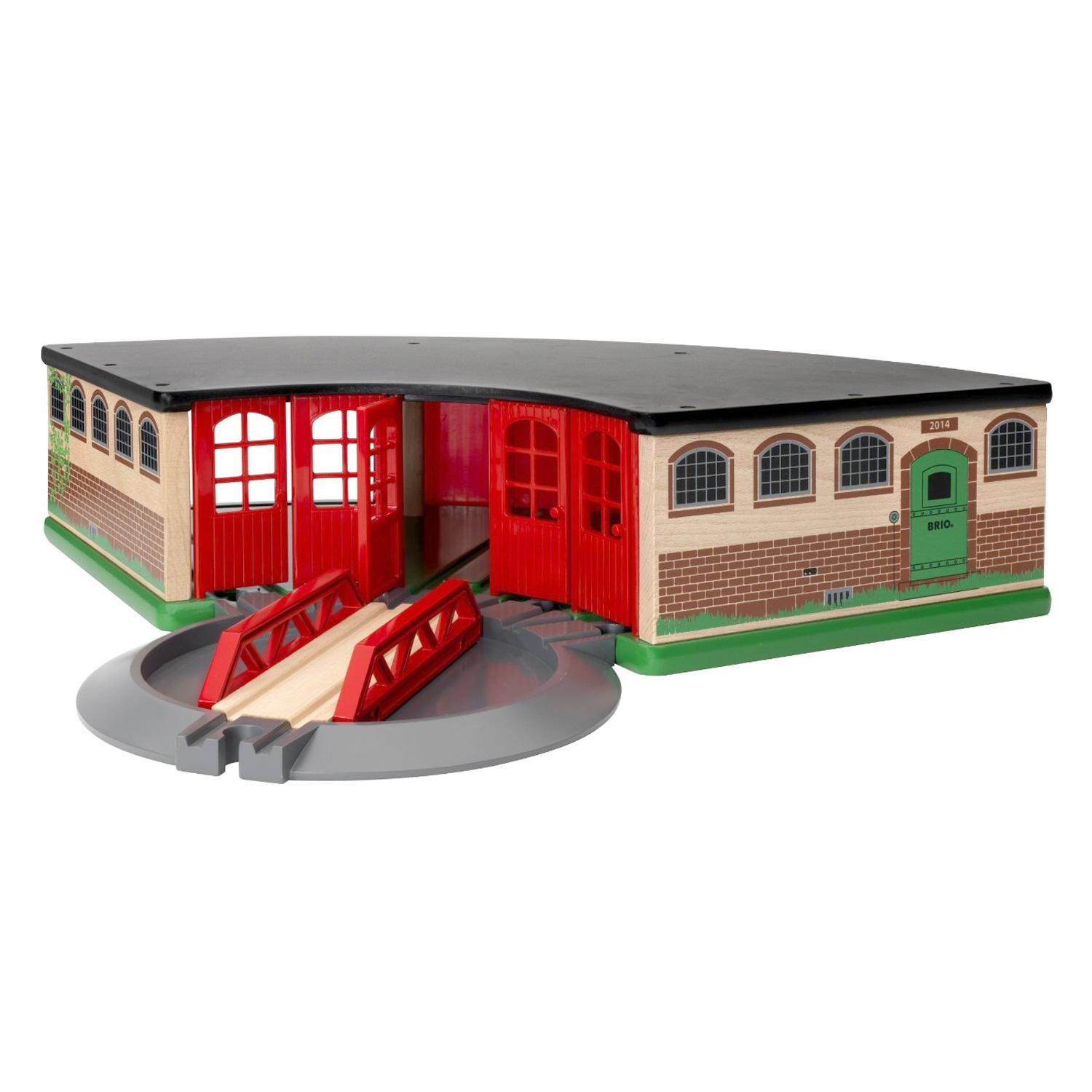 Utilisez la plaque tournante mécanique pour orienter les trains vers leur voie de garage. A l'arrière, de grandes portes coulissent pour pouvoir accéder aux trains.