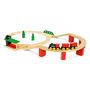 Tout comme un vrai train, ce modèle altique en bois monte la colline et s'arrête en gare. Et vous ne trouvez pas magique la manière dont les wagons sont reliés entre eux ? Rejoignez la fabuleuse aventure du chemin de fer et jouez sans fin !Nombre de pièces : 25.Dimensions du circuit : L 80.6 x P 51.