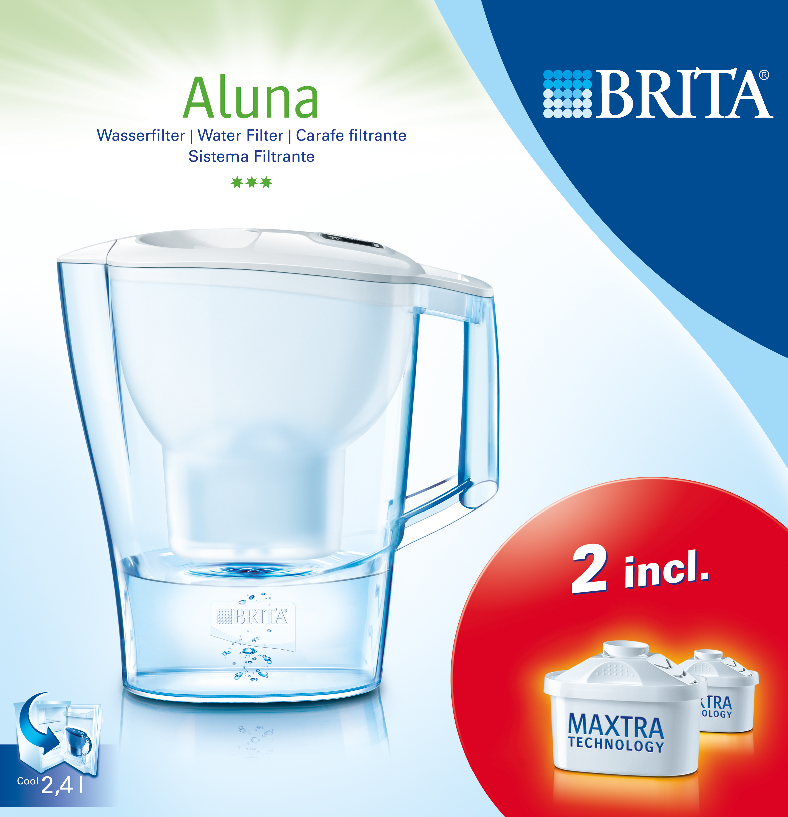 En savoir +Carafe BRITA ALUNA avec 2 cartouches MAXTRA pour deux mois d'eau filtrée au goût agréable. Cette carafe filtre tartre, chlore et plomb. 1 cartouche = 100 litres = 4 semaines