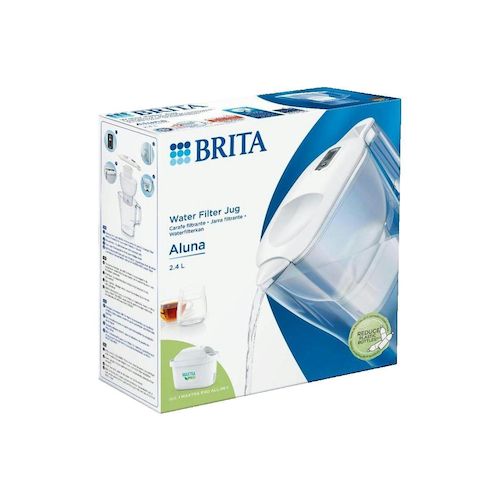 La carafe filtrante Brita Aluna, avec une capacité totale de 2,4 litres (1,4 litre d'eau filtrée), est conçue pour améliorer la qualité de votre eau en réduisant le chlore, le calcaire, et d'autres impuretés grâce au filtre MAXTRA PRO, efficace jusqu'à 150 litres ou environ 4 semaines. Fabriquée en plastique durable et sans BPA, elle allie sécurité et design moderne, s'adaptant parfaitement à tous les réfrigérateurs. L'indicateur électronique vous informe quand remplacer le filtre. Sa praticité est renforcée par le fait qu'elle est lavable, sauf le couvercle. Avec un poids de 0.86 kg, cette carafe est un choix écologique et essentiel pour une meilleure hydratation.