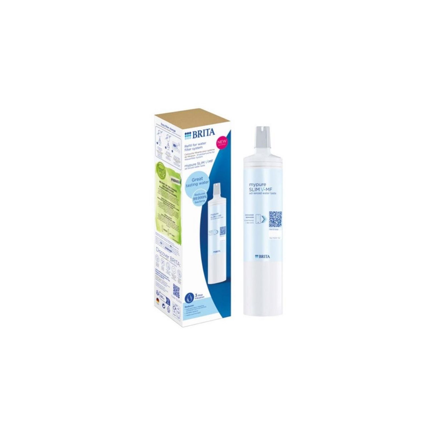 Brita 1052983 Cartouche filtrante MyPure Slim V-MF 1052983 de Brita recharge pour votre système de filtration MyPure Slim V-MF. De l'eau filtrée instantanément, directement depuis votre robinet de cuisine existant. Pour une eau du robinet plus pure au goût agréable directement à partir de votre robi