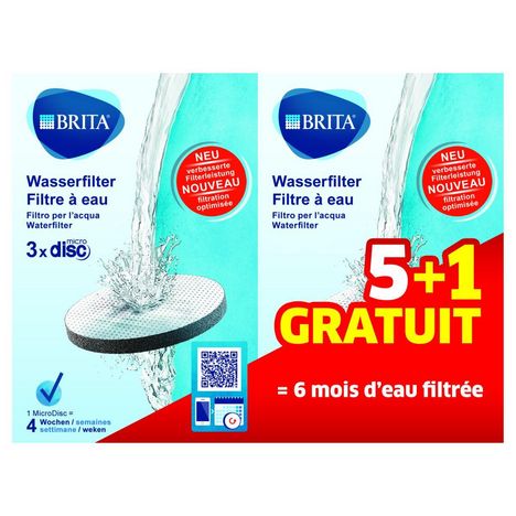 Fini les bouteilles en plastique, oui au zéro déchet ! Elaborés à partir d'écorces naturelles de noix de coco, ces filtres au charbon actif retiennent les métaux nocifs (plomb, cuivre...), et éliminent le chlore pour une eau au goût très agréable, révélant aussi le plein arôme du thé et du café. Ils empêchent la formation de tartre et réduisent la dureté de l'eau, contribuant ainsi à protéger les appareils ménagers. Pack de 5 filtres + 1 offert, pour toutes les carafes filtrantes Brita.
