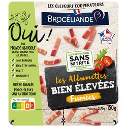 Ingrédients : Viande de porc issue d'animaux élevés sans antibiotique dès la naissance et nourris sans OGM (< 0,9%), sel, arôme naturel*, antioxydant : acide ascorbique. Fumé au bois de hêtre. Pouvant contenir de la MOUTARDE. Viande de porc origine France.