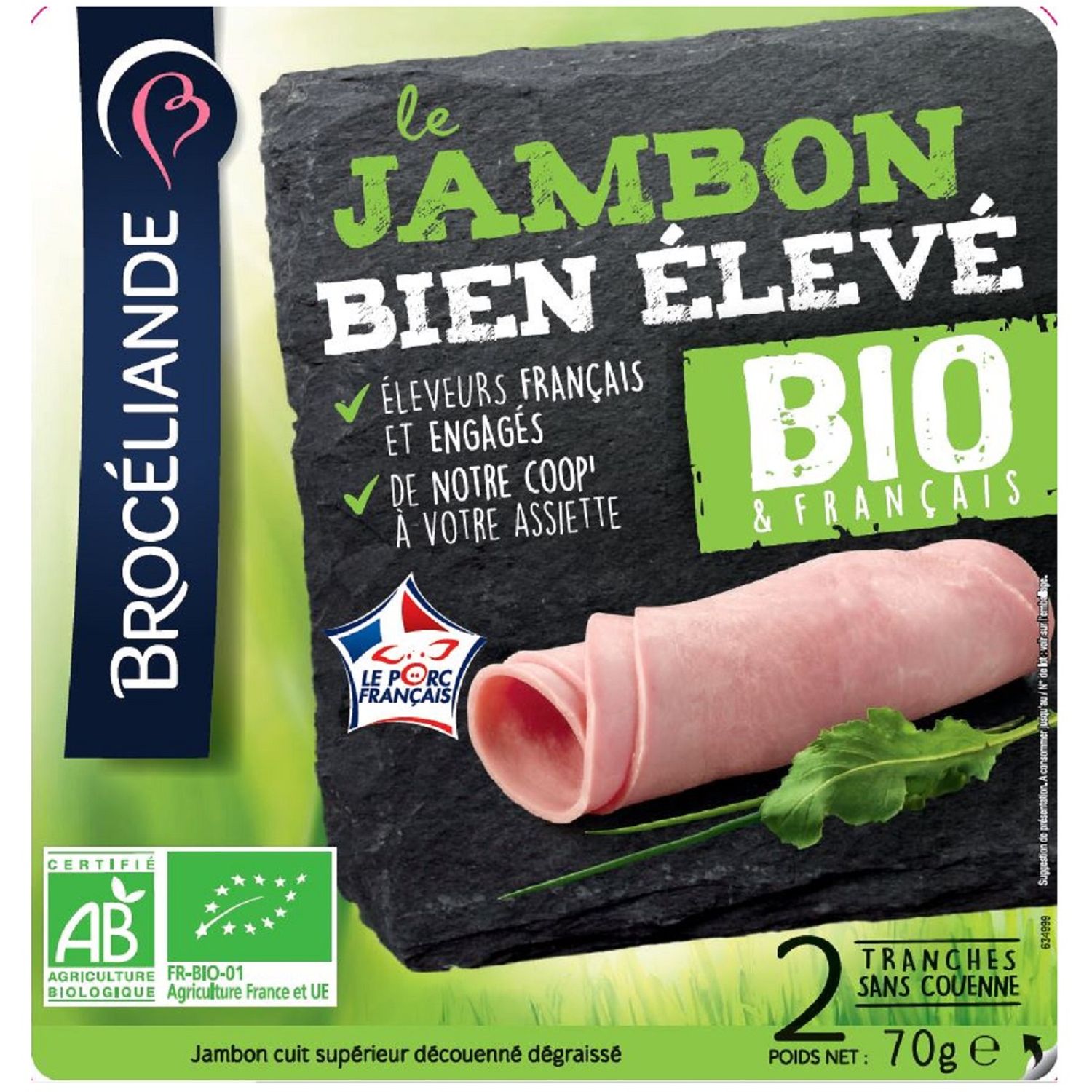 Brocéliande jambon supérieur découené dégraissé 2 tranches 70g