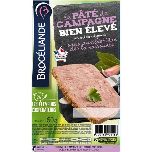 Pâté de campagne de qualité supérieure PATE DE CAMPAGNE DE QUALITE SUPERIEURE ISSU D’ANIMAUX ELEVES SANS ANTIBIOTIQUE DES LA NAISSANCE ET NOURRIS SANS OGM (<0.9%)