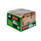 Ingrédients : Farine de blé, raisins secs 16,1% (raisins, huiles végétales : colza - coton), bigarreaux confits 15,1% (bigarreaux, sirop de glucose-fructose, concentré de carotte et d’aronia, correcteur d'acidité : acide citrique), oeufs frais, sucre, huile de colza, écorces d'orange confites 5,1% (écorces d'orange, sirop de glucose-fructose, sucre, correcteur d'acidité : acide citrique), stabilisant : sorbitols, sirop de glucose, extrait de malt d'orge, dextrose, extrait aromatique : rhum - infusion d'écorces d'oranges douces - arômes, arôme, gélifiant : alginate de sodium, poudres à lever : carbonates de sodium - tartrates de potassium, sel, arôme naturel d'orange, correcteur d'acidité : acide citrique.