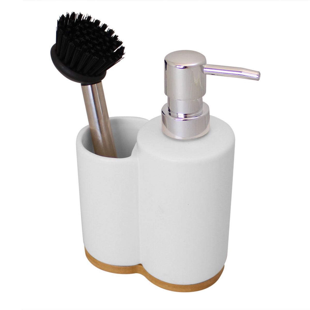 Brosse vaisselle avec flacon pompe céramique et bambou