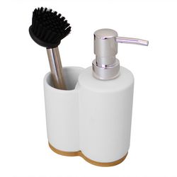 DISTRIBUTEUR DE SAVON POMPE CERAMIQUE AVEC FOND EN BAMBOU, ET UNE BROSSE VAISSELLES 11.5 x 6.4 x 18.5 cm