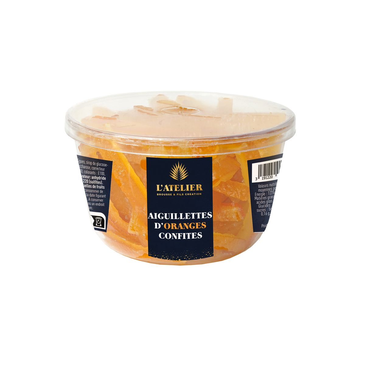 ECORCES D'ORANGE, sirop de glucose-fructose, saccharose, E330, ANHYDRIDE SULFUREUX.