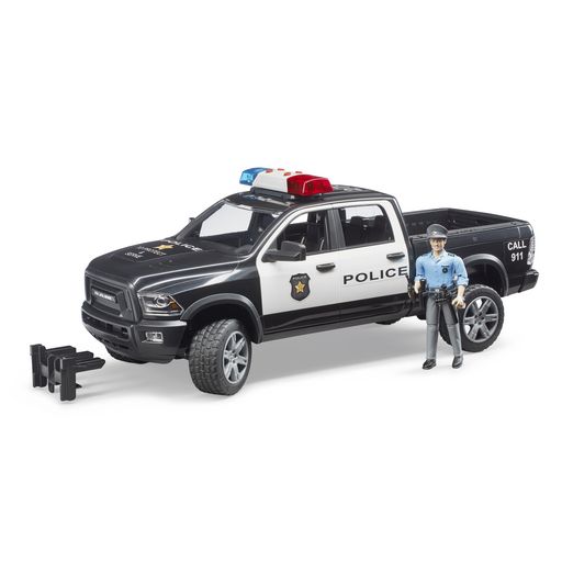 La couleur du véhicule peut-être différente de celle présentées sur le visuel - Le Pickup RAM 2500 de police de la marque Bruder est fourni avec une figurine de policier. Portes de la cabine s'ouvrant. Échelle : 1/16. A partir de 4 ans. Age minimum : 4 ans