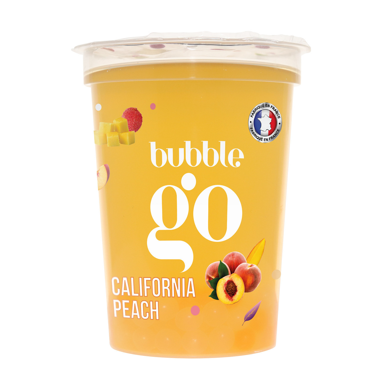 Boisson à base d'arome de thé vert, perles aux jus de litchi et mangue aromatisée et sirop de pêche