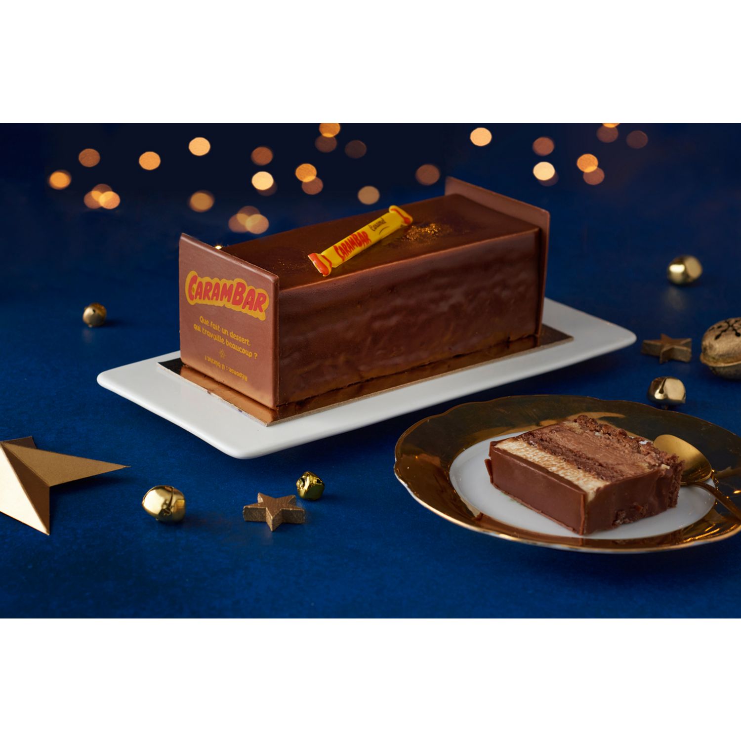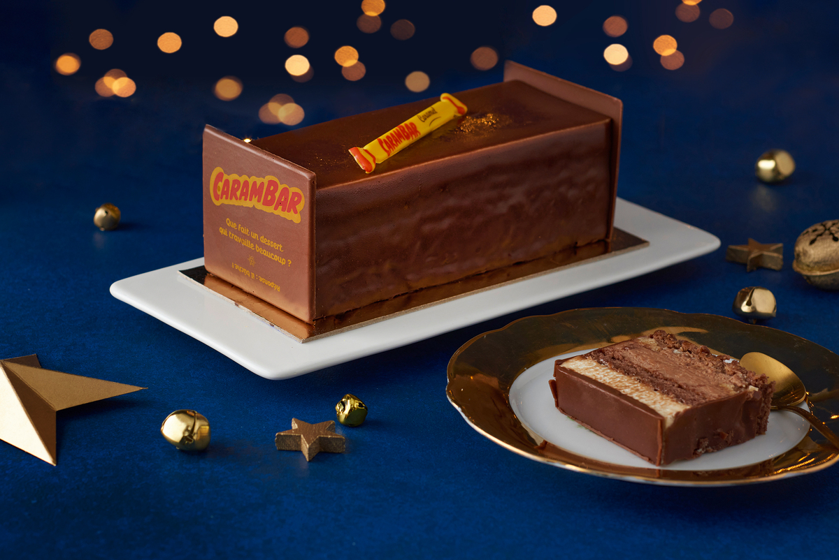 streusel, d'une ganache montée à la pâte à tartiner goût caramel Carambar® et d'une mousse à la vanille.