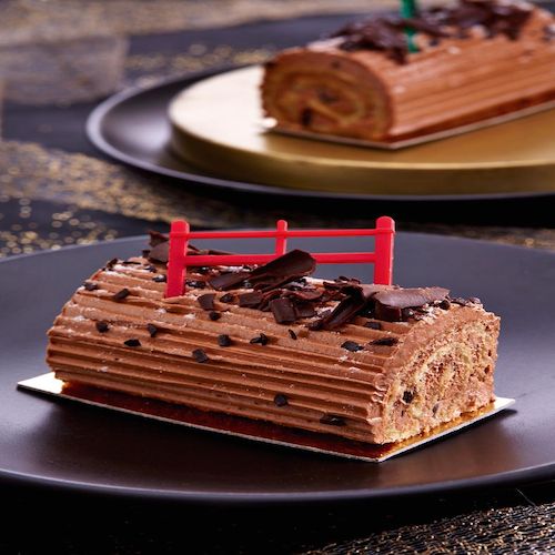 Biscuit génoise garni d'une crème au beurre parfumée au chocolat, produit décongelé.