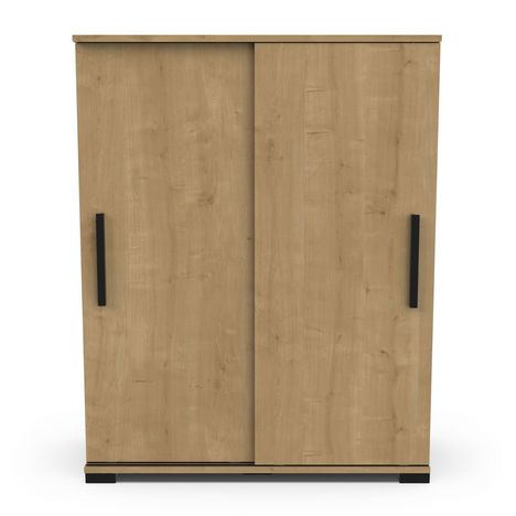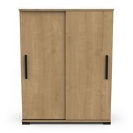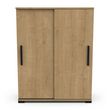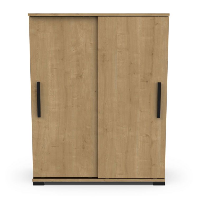 Rangement 2 portes coulissantes en panneaux de particules 15mm. Décor papier chêne hamilton. Charge maximale au-dessus du meuble : 12kg. 2 rayons intérieurs ; charge maximale : 9kg.